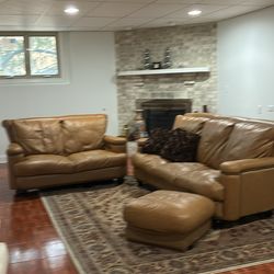 Tan Leather Sofa with Loveseat and Ottoman & Pillows$150Oak Lawn, IL