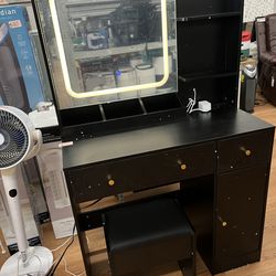 Black Makeup Vanity With Mirror, Stool & Charging Station$200Chicago, IL