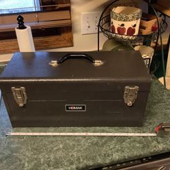 Homak vintage tool box approximately 20.5” in length 10” deep and 9” tall. Has removable top organizer. Both locks work excellent condition Also inc$55Joliet, IL