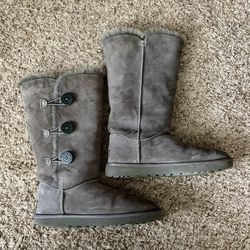 Gray UGG Women’s Bailey Button Triplet Tall Sheepskin Boots Size 10$25Bedford Park, IL