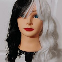 Half Black White Wig with Bangs Women Girls Short Curly Wavy Bob