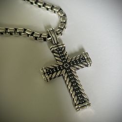 Authentic David Yurman Large Black Diamond Cross Pendant + Thick Chain Mint$850Downers Grove, IL