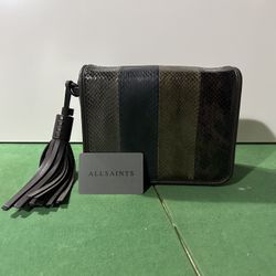 AllSaints Striped Leather Shoulder Bag Tassel Chain Strap Black Olive Gray$50Skokie, IL