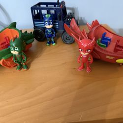 LOT of Disney Jr. PJ Mask 3 Vehicles 3 Figures Red Owlette, Green Gecko,Catboy$10Chicago, IL