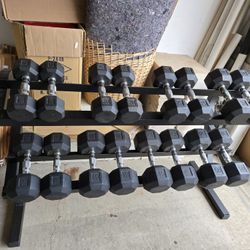 15-50lb (520lb) Rubber Hex Dumbbell Set With VTX Heavy Duty Rack $650Evanston, IL
