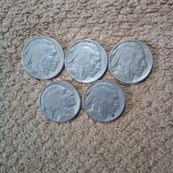 Five Buffalo Nickels 1924, 1929, 1930, 1936, 1937$10Westmont, IL
