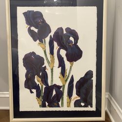 Huge Framed 28 X 37 Matted, Glass Artwork, Flower: Blue Irises$20Chicago, IL