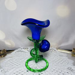MURANO Cobalt Blue Rose Flower Tulip Art Deco Glass Candle Candlestick Holders$75Skokie, IL
