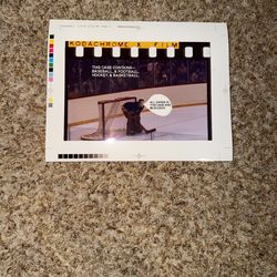 print labeled "KODACHROME X FILM" that depicts a vintage hockey goalie in a net. The text on the image indicates it is from a collection containing ba$10Oswego, IL