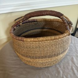 20th Century Handwoven Soft African Bolga Shopping Basket With Leather Handle$40Naperville, IL