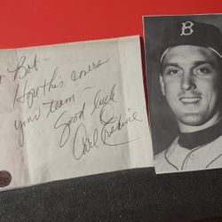 Carl Erskine Personal Note & Small Picture print & COA, Top Loader protective $40Arlington Heights, IL