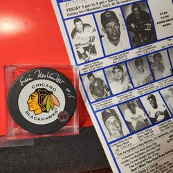 Eric Nesterenko Signed Puck Autograph w/coa, case & schedule