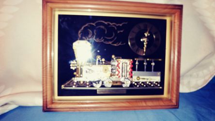 vintage Art 1855 4-4-2 Steam Locomotive & Tender Framed. Linden Clock.$47Des Plaines, IL
