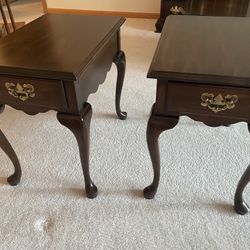 Vintage Mid Century Queen Anne Inlaid Mahogany Wood Side/End Table W/ Pull Out Drink Trays