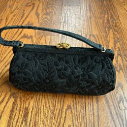 VTG 1950s JR Florida black floral satin evening bag bra top$54Prairie View, IL