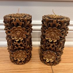 BUNDLE Of 2 NEW Volcanica Black & Gold Hand Carved Candles WITH Bases Retail $120 EACH$65Lake Zurich, IL