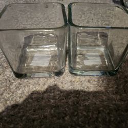 Lot of 2 Square Clear Glass Candle Holders, Vases, 5” and 4”$5Oak Park, IL