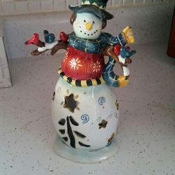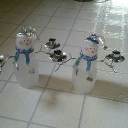 Frosted Glass Snowman Double Candle Holder Scarf Hat Christmas Holiday$50DeKalb, IL