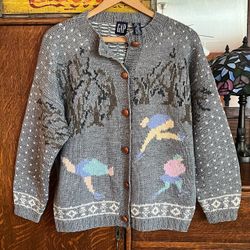 Beautiful Vintage Gap Fisherman Oversized Wool Cardigan With Leather Buttons $40Crystal Lake, IL