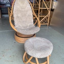Vintage Jordan Brown Rattan Rocker Swivel Chair with Footstool$300Lake Zurich, IL