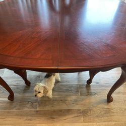 Ethan Allen Wood Dining Table With Eight Maroon Red Chairs$500Winnetka, IL