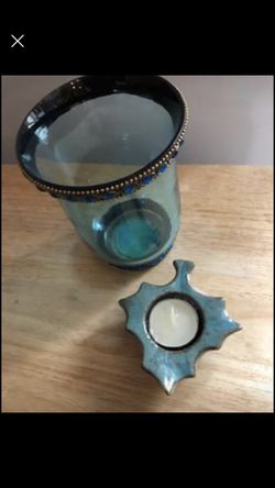 Blue Vase with Free Leaf Tealight Candleholder - NEW$10Evanston, IL