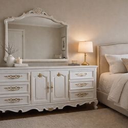 French Provincial Cream & Gold Dresser Ornate Brass Pulls Vintage Style$295Lake Zurich, IL