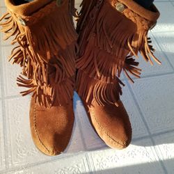 Size 4 Minnetonka Fringe Boots/moccasins $40Chicago, IL