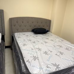Queen bed frame with mattress and 2 night stand $350 only Only queen size available$350Addison, IL
