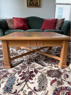 Black solid wood coffee table with custom glass top from World Market$90Mount Prospect, IL