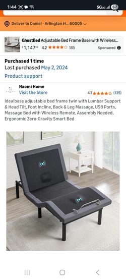 Twin XL adjustable bed base with head tilt, foot incline, USB, massage, remote$249Arlington Heights, IL