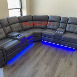 DARK GREY BRAND NEW LED LIGHT POWER RECLINING SECTIONAL SAME DAY DELIVERY $40Skokie, IL