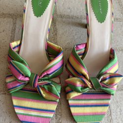 Women Shoes, New Without Box, Size 9: Stripe Satin Bow Sandal Heels, 2.5”, By Fiona$21Vernon Hills, IL