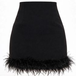 Lulus Celebratory Sweetie Black Ostrich Feather Mini Skirt Sz S High Waist A-Line Party Cocktail$30Geneva, IL