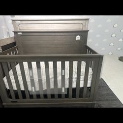 Light Gray Wooden Chair Baby Crib with mattress and mattress protector included.$125Downers Grove, IL