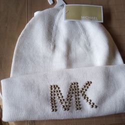 NWT Michael Kors Ivory Knit Beanie Hat Cap w/Gold Pin Dot MK Logo, One Size$35Glendale Heights, IL