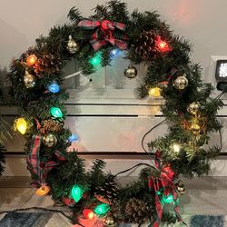 Indoor outdoor Christmas wreath. Has lighted vintage looking strand. About 20” Wide. $25Lombard, IL
