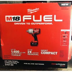 Milwaukee M18 FUEL 18-Volt Lithium-Ion Brushless Cordless 1/2 in. HIGH TORQUE 1400Ft/Lbs Impact Wrench Kit With Two 5.0 Ah Batteries. $399Mundelein, IL