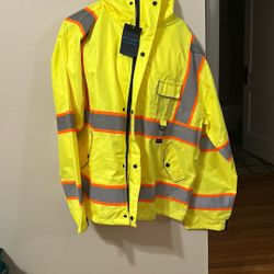 NEW Radians Radwear High Visibilty Class 3 Heavy Duty Rip Stop Waterproof Rain Jacket, Size 2X. Has a couple of marks on the silver reflective strips $40Huntley, IL
