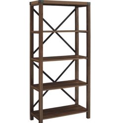 64” Sophie Rustic Farmhouse X Frame Bookshelf Bookcase Furniture Home Decor Room Living Dark Walnut - Saracina Home $180Buffalo Grove, IL
