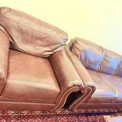 Brown Leather Sofa Set (2 Pieces) – Classic Nailhead Trim - Free Curbside Delivery!$450Hoffman Estates, IL