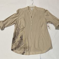 Style & Co Women Plus Size 22W Cream Tunic Top Blouse Pleated Roll Up Long Slvs.$20Bolingbrook, IL