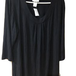 Caribe 1X Soft Stretch Scooped Neck Three Quarter Sleeve Long Black Tunic Top$50Arlington Heights, IL