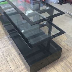 High Gloss TV STAND ... Black Finish and Black tempered safety glass shelves 52 x 18 x 22 inches...RETAILS FOR 249.95 PLUS TAX..OPEN BOX ITEM..$145West Chicago, IL
