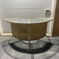 Vintage Half-Moon Rattan & Glass Console Table – Free Curbside Delivery $200Addison, IL