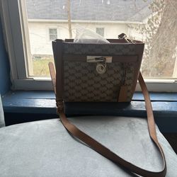 Michael Kors MK Monogram Crossbody Satchel Brown Tan Gold Hardware$70Murray, KY