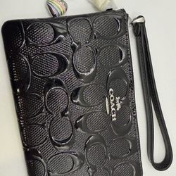 Coach wristlet in black signature leather with heart charm$75Ind Head Park, IL
