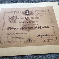 Vintage Document Certificate From Telephone Pioneers Of America $15Stickney, IL