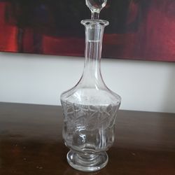 Crystal decanter with etched grapevine design and faceted stopper$35Willowbrook, IL