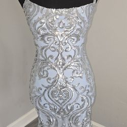 Silver light blue sequin bodycon short dress with open back$45Schaumburg, IL